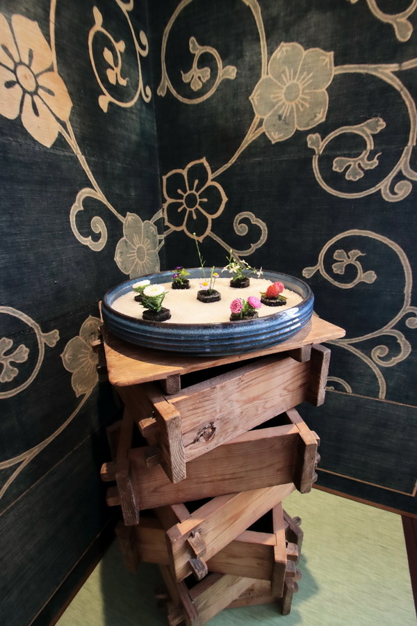 有著130歷史的「岩井屋」,外觀為典型的日式溫泉旅店樣貌,對它的第一印象是帶著點歲月感,但不會給人老舊失修的感覺;走進旅館大廳,一陣淡淡的熏香味飄散而來,優雅而氣韻流長;大廳裡的布置非常雅致,老家具、陶瓷器、書畫、染織、花藝盈滿一室,加上借景庭園美景入室,讓人處處感受到旅店主人的用心。同時這些作品都大有來頭。