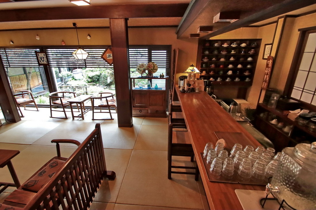 ▲ 來岩井窯泡溫泉之外,也可在大廳裡喝杯現煮咖啡。