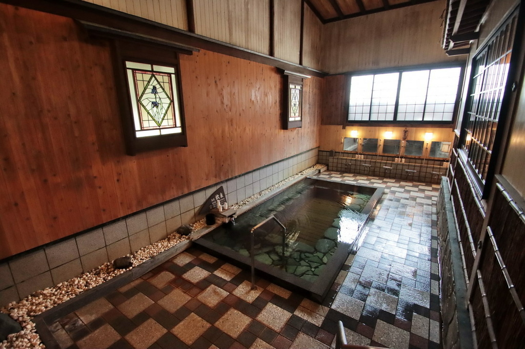 岩井屋的溫泉區規劃得非常禪風雅致,處處帶有日本大正時期的氣韻,和洋折衷,建築體挑高,且融合一些洋式裝飾藝術,整體氛圍典雅而氣派。岩井屋的溫泉區域其實不算大,只有每天晚上20:00會相互對調的男、女湯;一處為有室外、室內2池不算大的溫泉湯池;另一處只有1池室內湯。