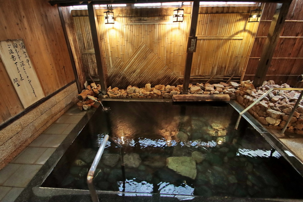 ▲ 不大的長寿の湯,感覺同時浸泡4~5人就會顯得擁擠,中間較深處為立湯(立ち湯)。