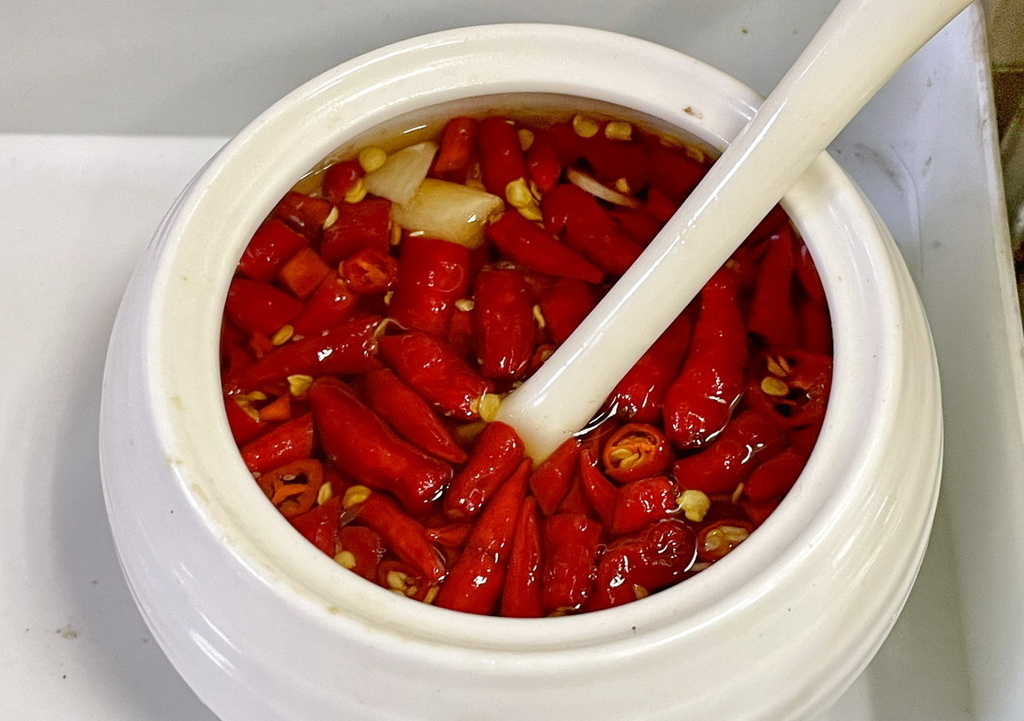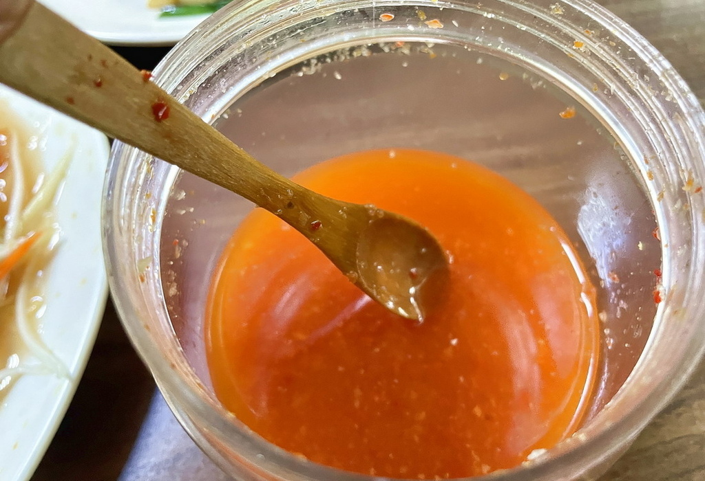 ▲ 泰國小吃店不會少的辣椒魚露,以及下圖的泰式甜辣醬,都放在桌上可自行取用。