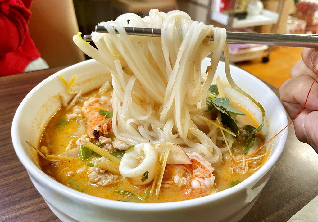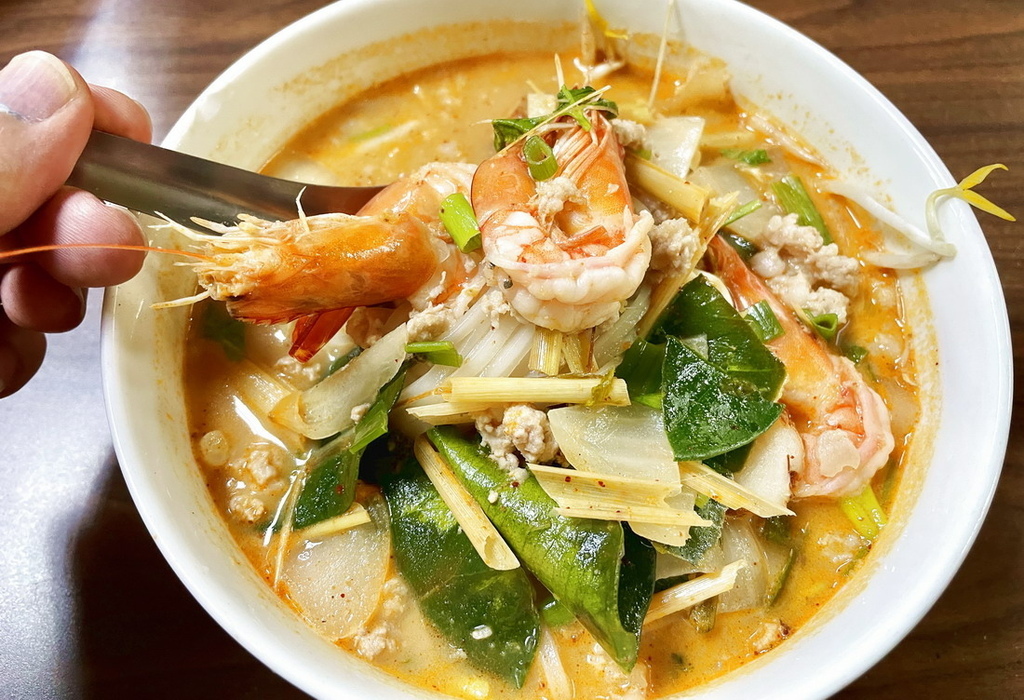 ▲ 香氣撲鼻的泰式酸辣河粉湯,其實就是冬蔭+河粉,酸香濃厚、配料也多,無敵好吃的。