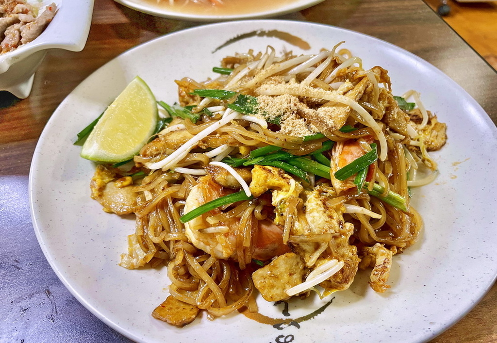 ▲ 一盤120元的炒河粉,鹹香、鍋氣十足,而且大份,上面的粉末是花生粉,整體跟泰國街頭賣的味道幾乎一模一樣。