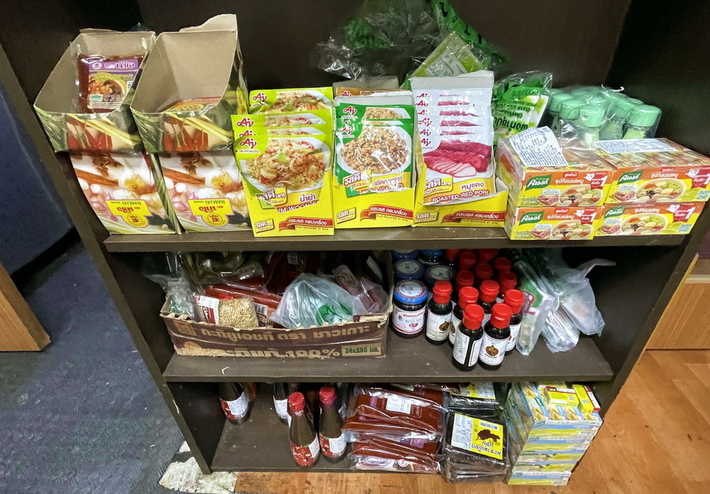正宗泰國菜除了是間泰式小吃店之外,也是一雜貨店,賣著一些泰國進口調味料、零食、調理包、米,甚至連洗衣粉、牙膏、爽身粉什麼的,都有。當天我們來用餐時,就有幾組客人吃完飯之後,加碼再購物才滿意地離開。